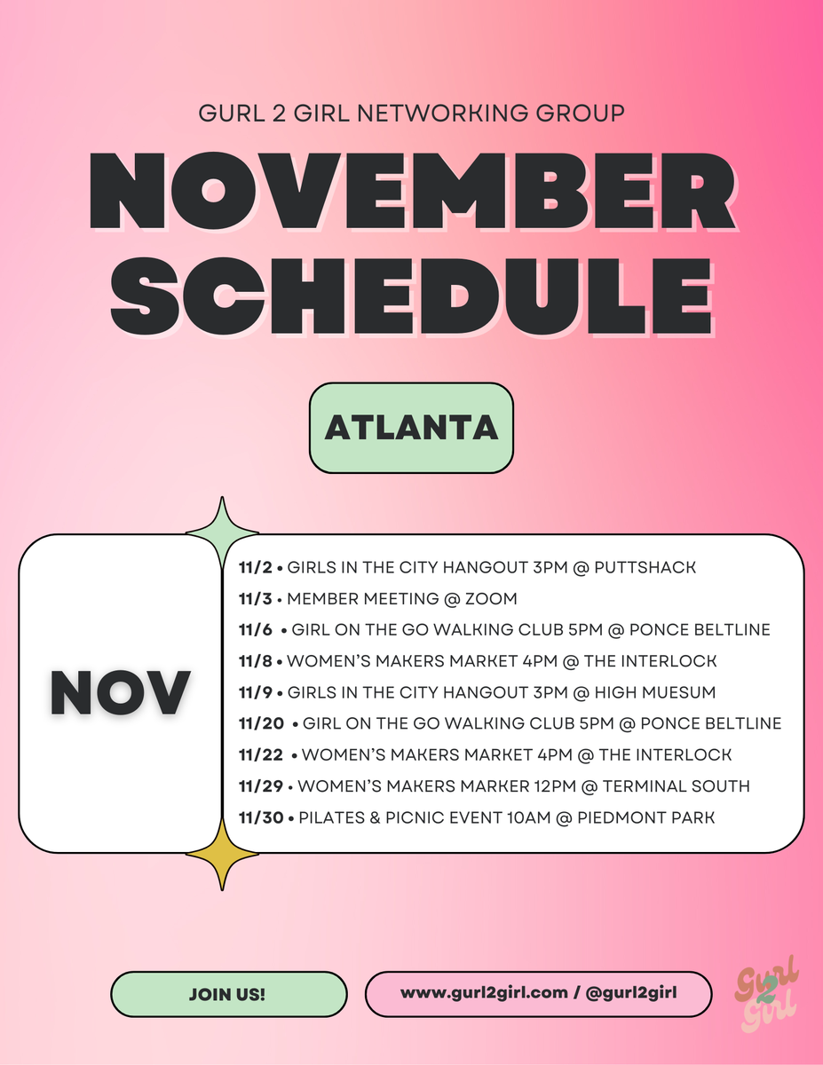 Let’s step away from business and step into fun! Girls in the City is a new Gurl 2 Girl hangout series designed for our members to relax, let loose, and truly connect—no pitches, no pressure, just vibes.